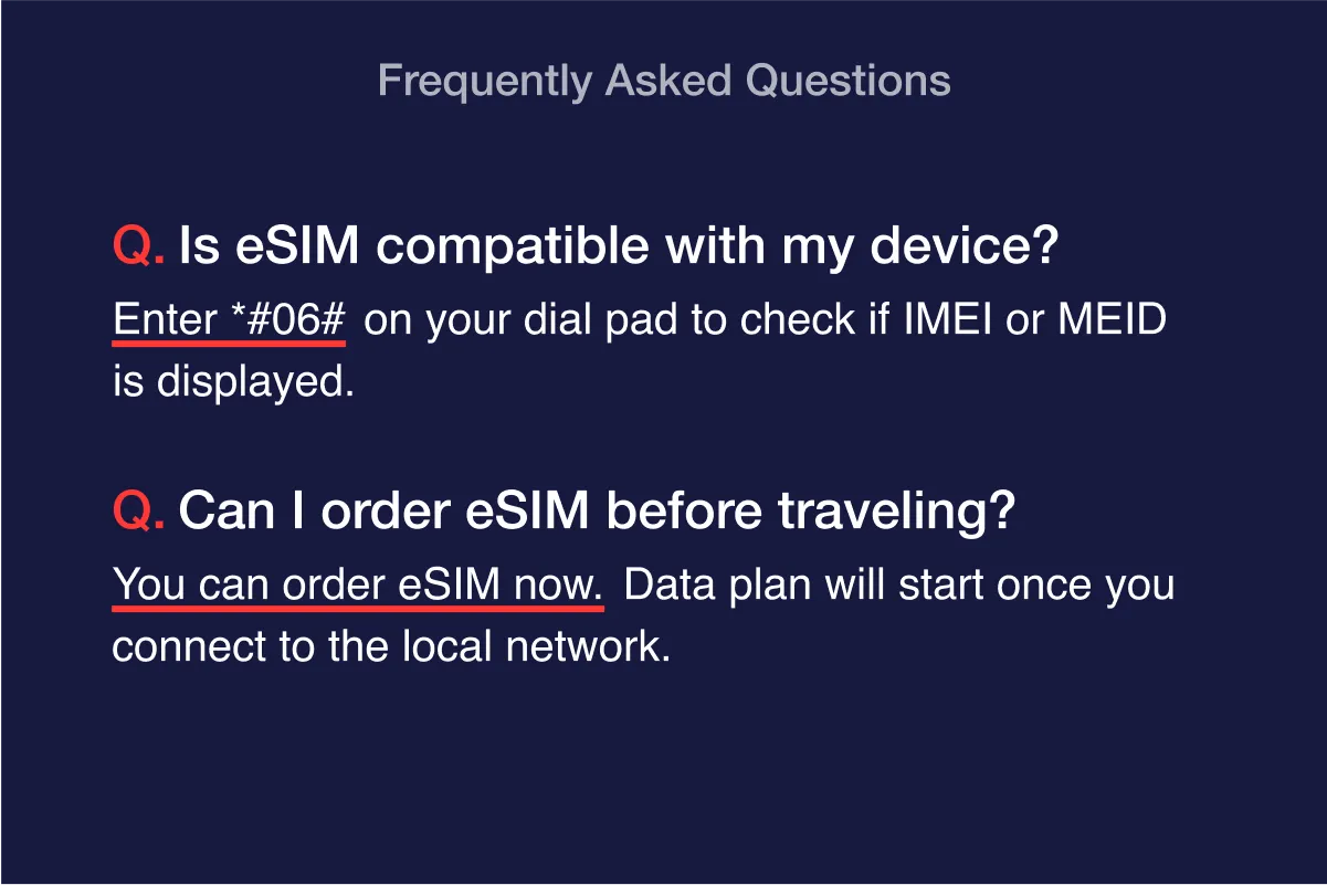 You can purchase an eSIM at your convenience, either one day before your travel date or upon arrival at your destination.