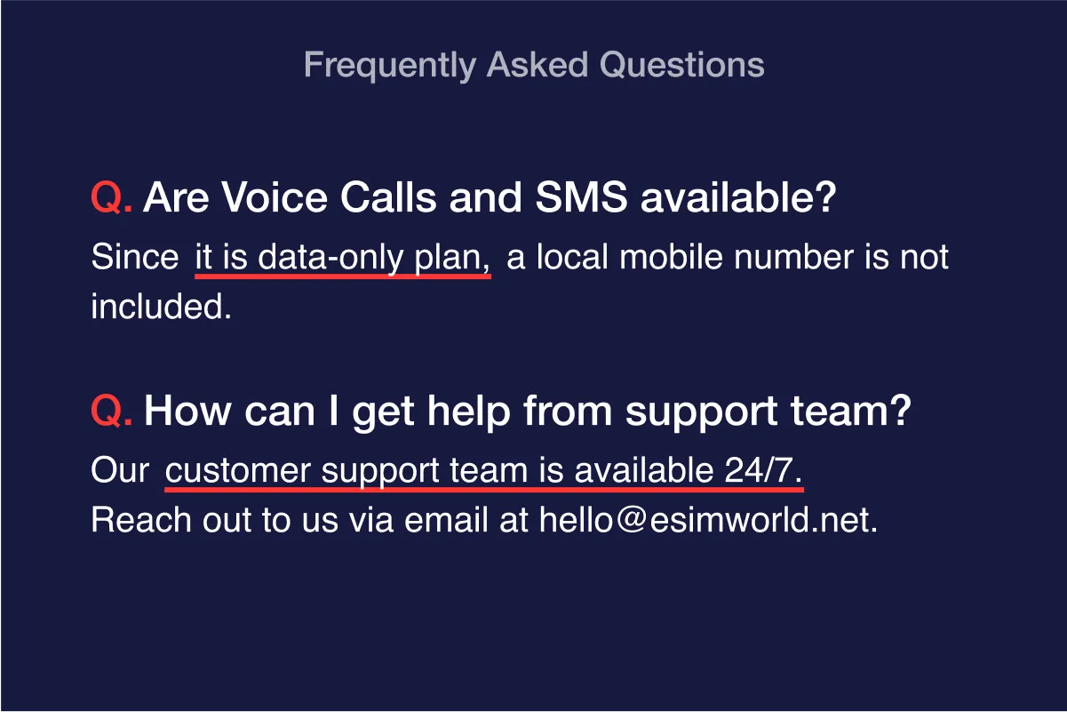 For assistance, contact the ESIMWORLD.net anytime at [email protected] or via WhatsApp. |